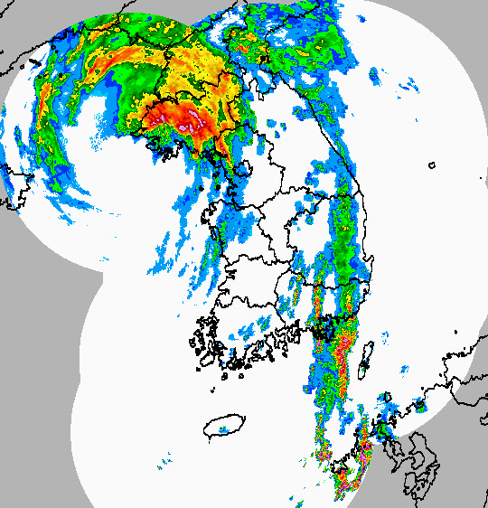 태풍 바비가 27일 오전 5시 30분 현재 북한 황해도 부근에 상륙해 북상하고 있다. /기상청 |