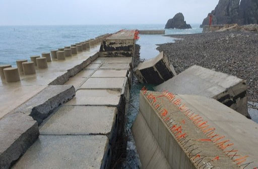 방파제 밑에 채워진 사석 등 골재는 바다로 유실되고 기포 시멘트 등이 이탈해 여기저기 널브러져 있다고 군은 전했다. 특히 높이 30m에 육박한 30억원짜리 대형 구조물 케이슨(16번) 밑 골재가 빠지면서 옆으로 이탈한 상태다.