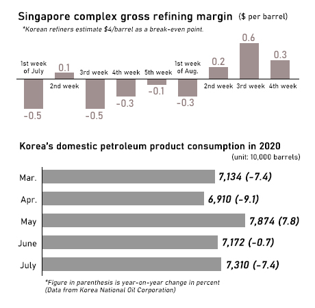 South Korean refiners cannot expect improvement in the second-half bottom line after the government decided not to defer their tax dues longer even as they struggle with record losses from sluggish fuel demand and prices amid ongoing pandemic crisis.