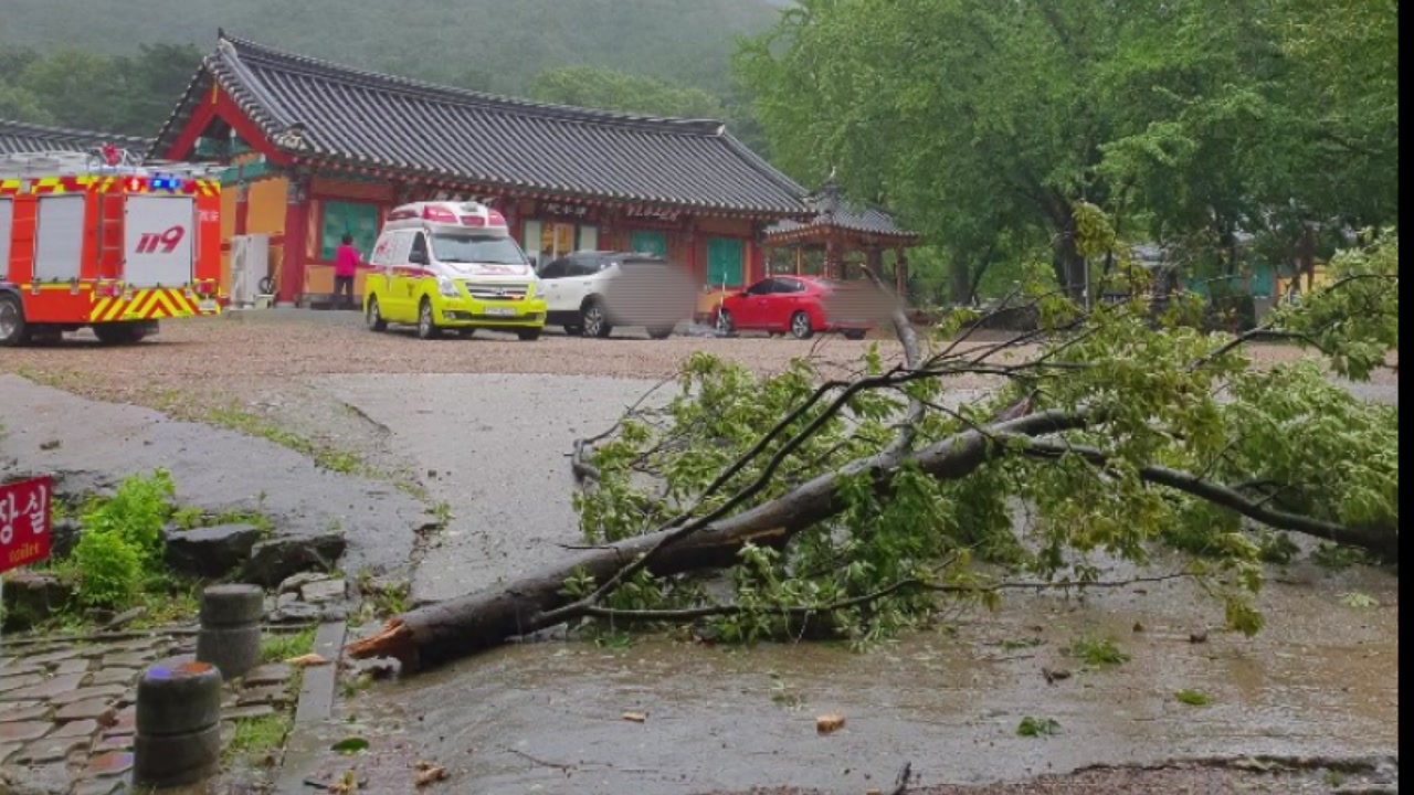 오늘(7일) 아침 8시쯤 충남 공주시 신원사에서 강풍에 나무가 부러져 지나가던 70대 여성을 덮쳤습니다.