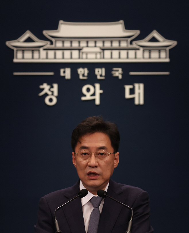 강민석 청와대 대변인이 16일 오후 청와대 춘추관 대브리핑룸에서 문재인 대통령의 스가 요시히데 새 일본 총리 취임 축하 서한 관련 브리핑을 하고 있다./연합뉴스 |