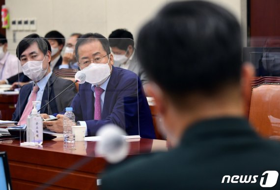 홍준표 의원이 16일 서울 여의도 국회 국방위원회 전체회의에서 열린 서욱 국방부 장관 후보자 인사청문회에서 질의를 하고 있다. |