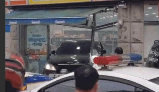지난 15일 오후 6시쯤 승용차가 경기도 평택의 한 편의점에 돌진해 난동을 부리고 있는 모습(사진=온라인 커뮤니티) |