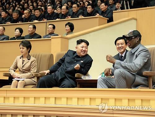 2014년 방북해 김정은 국무위원장과 만난 전 미국프로농구(NBA) 선수 데니스 로드먼 [EPA=연합뉴스 자료사진] |