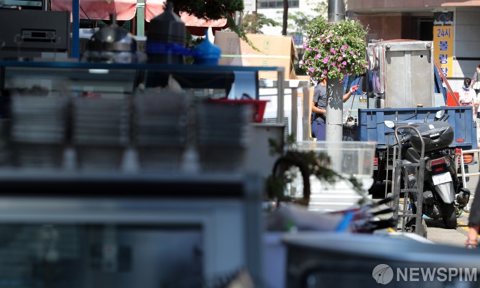 [서울=뉴스핌] 김학선 기자 = 코로나19 사태 장기화로 식당 등 자영업자들의 폐업률이 증가하며 중고물품이 쏟아지는 가운데 21일 오후 서울 중구 황학동 주방거리에서 한 상인이 주방기구를 옮기고 있다. 2020.09.21 yooksa@newspim.com