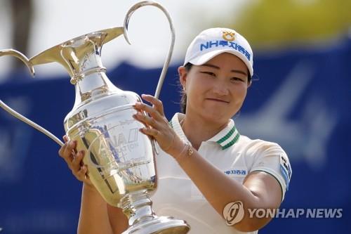 이번 시즌 두 번째 메이저 ANA 인스피레이션 우승 트로피를 든 이미림. |