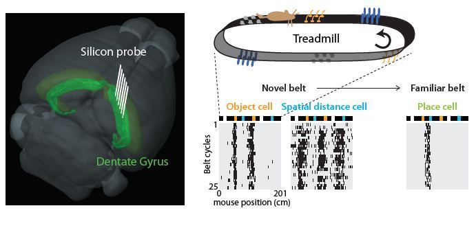 장소를 기억하는 과립세포를 관찰한 결과, 새로운 공간에 놓였을 때 과립세포 내에 존재하는 장소세포가 사물의 위치 정보를 나타내거나 일정한 간격의 거리의 정보를 나타냈다. 훈련일이 늘어나며 점차 공간에 익숙해지고 학습된 후에는 사물의 위치 정보와 거리 정보를 나타내는 세포들은 소멸되고 특정 장소를 나타내는 장소세포들이 점차 늘어났다. 여러 사물의 위치와 거리로 장소를 기억하다가 장소 자체를 기억하게 된 것이다.