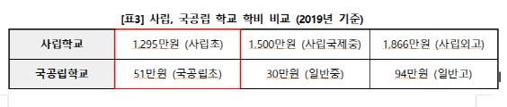 연간 학비 1300만원 사립초, 국공립초 대비 등교일수 2~3배 높아