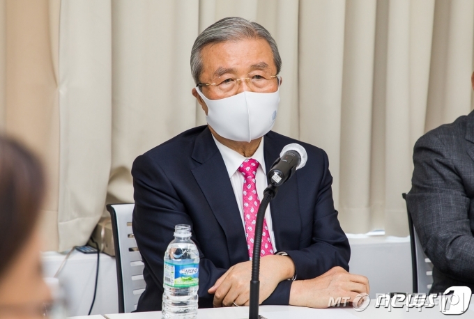 김종인 국민의힘 비상대책위원장이 8일 오후 서울 마포구 마포현대빌딩에서 열린 '더 좋은 세상으로' 세미나(마포포럼)에서 인사말을 하고 있다. /사진제공=뉴스1 |
