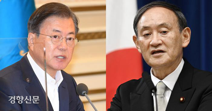 문재인 대통령(왼쪽)과 스가 요시히데 일본 총리. 청와대사진기자단·교도연합뉴스 |