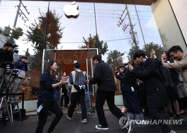 지난해 10월 서울 강남구 신사동 애플 가로수길 매장에서 열린 애플 아이폰11 국내 출시 행사를 찾은 구매 대기자들이 매장 안으로 입장하고 있다. |