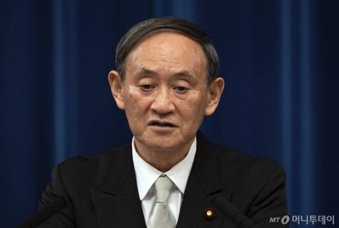 [도쿄=AP/뉴시스]16일 스가 요시히데 신임 일본 총리가 도쿄 총리 관저에서 취임 기자회견을 가지고 있다. 2020.09.17. |