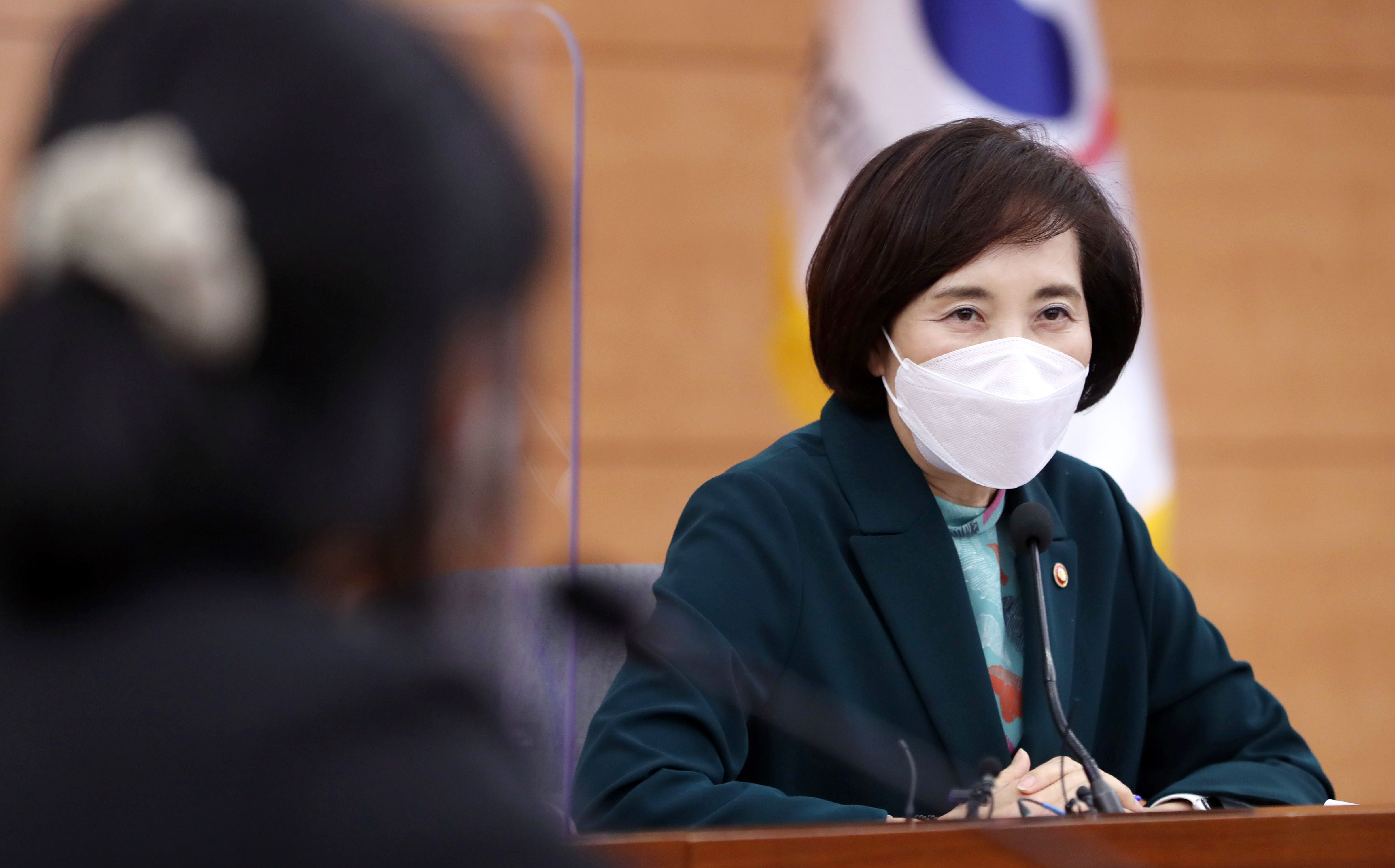 15일 오후 유은혜 교육부 장관이 서울 종로구 정부서울청사 별관에서 열린'기후위기 대응, 교육을 통해 시작하다'에서 발언 하고 있다. /뉴시스 |