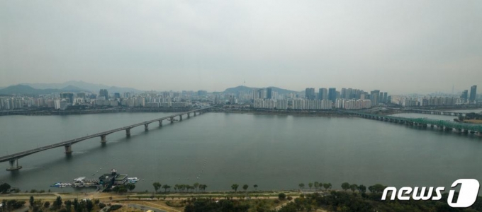 21일 서울 영등포구 63스퀘어에서 바라본 도심이 흐리다. 이날 초미세먼지 농도는 오후 한때 나쁨 수준을 보이겠으며 고비사막과 중국 내몽골 고원에서 황사가 발원함에 따라 22일까지 이틀간 국내에 영향을 미칠 전망이다. 2020.10.21/사진 = 뉴스 1 |