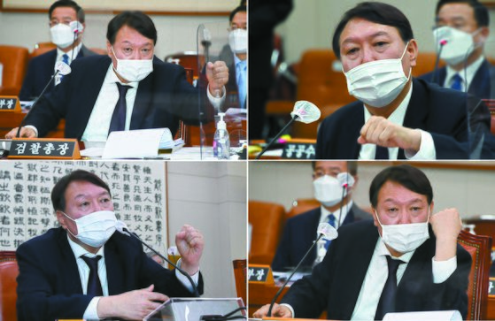 윤석열 검찰총장이 22일 국회에서 열린 법제사법위원회 대검찰청 국정감사에서 의원들과 질의응답을 하고 있다. 뉴스1 |