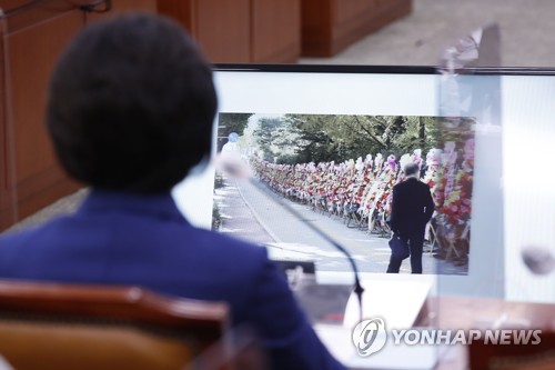 더불어민주당 김남국 의원은 대검찰청에 윤 총장을 응원하는 화환이 답지한 장면을 촬영한 사진을 국감장에 띄우고는 "이렇게 나열해놓고 본인이 정치적 지지를 받고 있다는 식으로 위세를 보이는 태도는 매우 잘못됐다"고 비난했다.