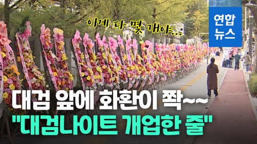 (서울=연합뉴스) 윤석열 검찰총장을 응원하는 화환이 대검찰청 앞을 뒤덮는 진풍경이 연일 계속되고 있습니다.