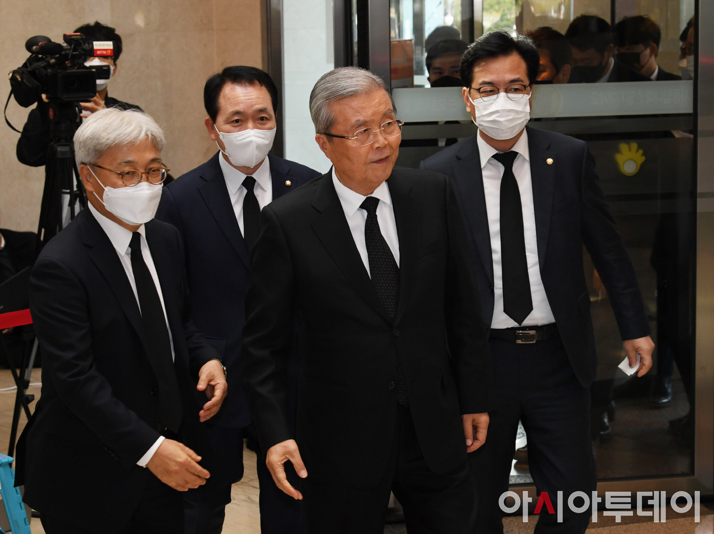 아시아투데이 정재훈 기자 = 김종인 국민의힘 비대위원장(왼쪽 세번째)이 26일 오후 고 이건희 삼성그룹 회장 빈소가 마련된 서울 강남구 삼성서울병원 장례식장에 들어서고 있다. /사진공동취재단
