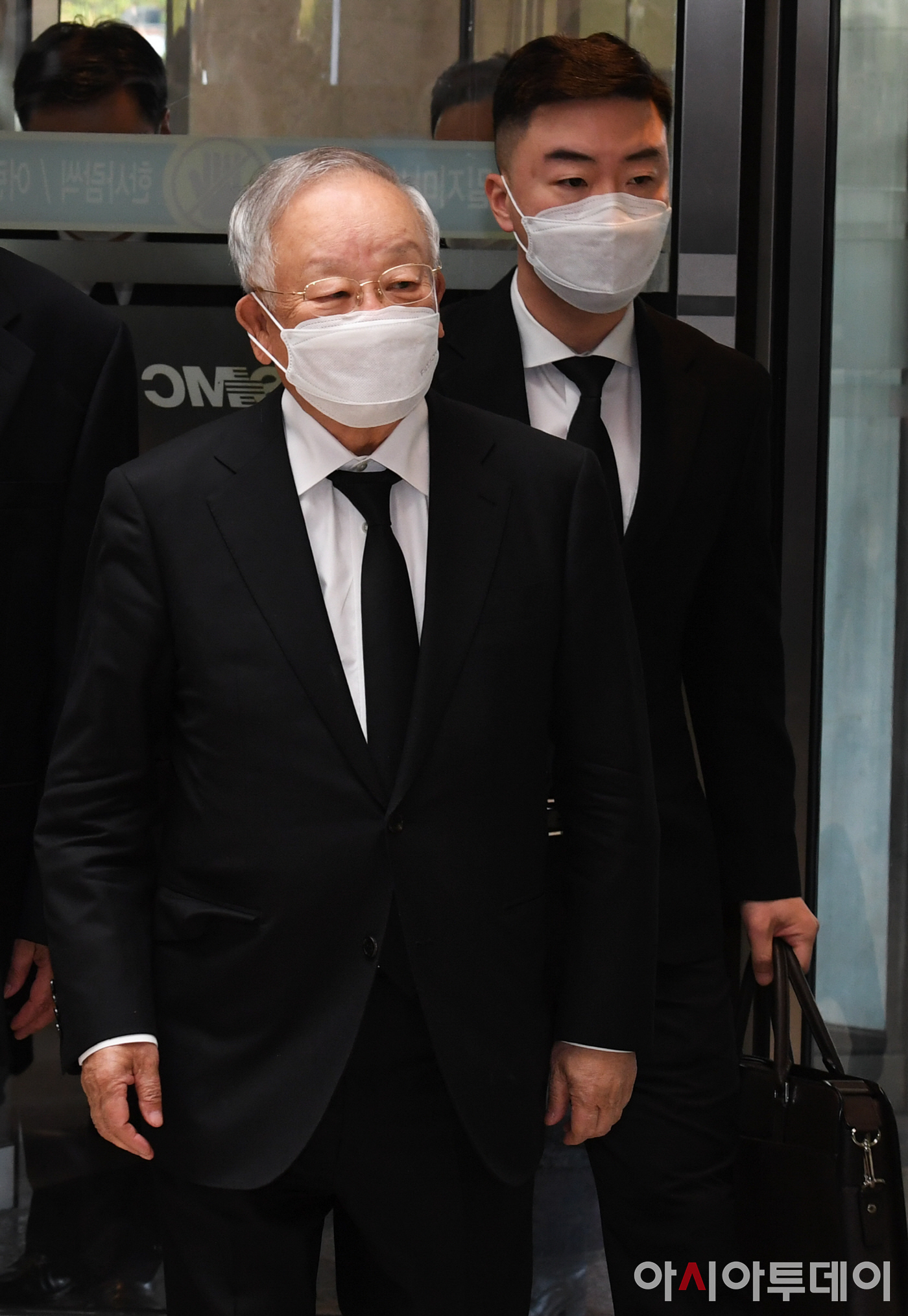 아시아투데이 정재훈 기자 = 손경식 한국경영자총협회 회장(왼쪽)이 26일 오후 고 이건희 삼성그룹 회장 빈소가 마련된 서울 강남구 삼성서울병원 장례식장에 들어서고 있다. /사진공동취재단