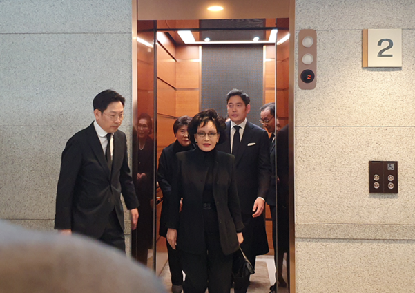 신세계그룹에 따르면 이명희 회장은 이날 오후 2시 30분쯤 정용진 신세계그룹 부회장, 정유경 신세계백화점 총괄사장과 함께 서울 삼성서울병원 장례식장을 찾았다.