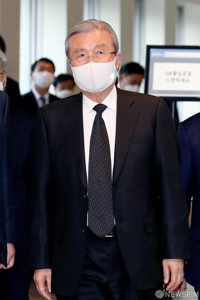 [서울=뉴스핌] 사진공동취재단 = 김종인 국민의힘 비상대책위원장이 26일 오후 고(故) 이건희 삼성그룹 회장 빈소가 마련된 서울 강남구 삼성서울병원 장례식장을 찾아 조문을 마친 후 건물을 나서고 있다. 2020.10.26 photo@newspim.com