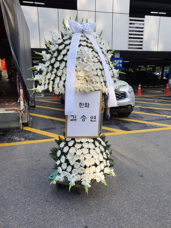 지난 25일 이건희 회장의 빈소가 마련된 서울 강남구 삼성서울병원 장례식장에 김승연 한화그룹 회장이 조화를 보냈다. [사진제공=공동취재단] |