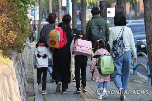 지난 19일 서울의 한 초등학교 학생들이 엄마 손을 잡고 등교하고 있다. [연합뉴스 자료사진] |