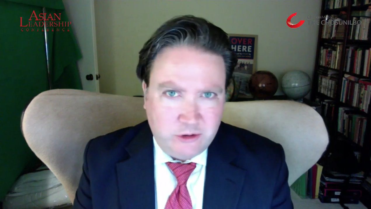 마크 내퍼 미 국무부 한국일본 담당 부차관보가 지난달 9일 본사가 주최한 아시안 리더십 콘퍼런스(ALC) 웨비나에서 발언하고 있다. /조선DB |