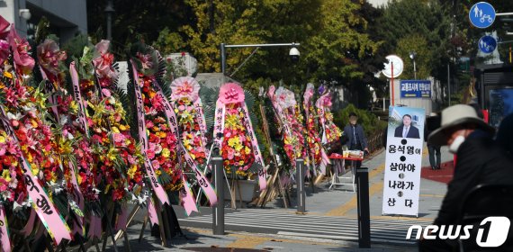20일 서울 서초구 대검찰청 앞에 윤석열 검찰총장을 응원하는 화환이 놓여 있다. |