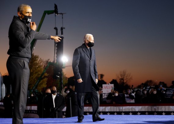 이날 미시간주 유세에서는 버락 오바마 전 대통령까지 참석해 바이든을 위해 공동 유세를 펼쳤다.