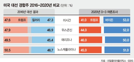 한편 미국 대선이 이틀 앞으로 다가온 가운데 바이든 후보가 주요 경합주에서 우위를 나타냈다.