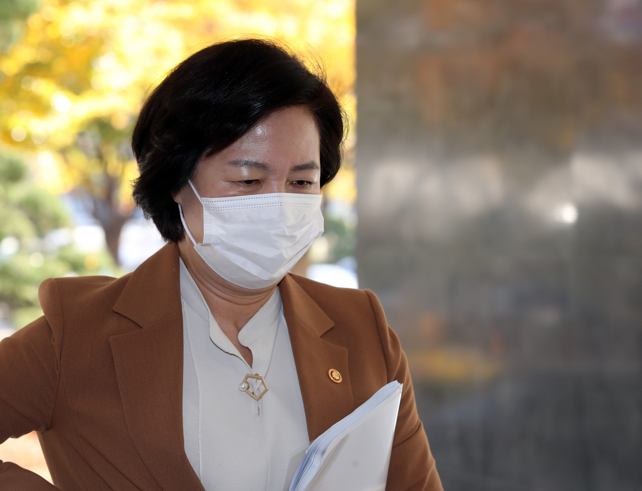 추미애 법무부 장관이 3일 오전 국무회의에 참석하기 위해 정부서울청사로 들어서고 있다. [연합] |