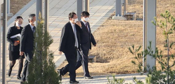 윤석열 검찰총장이 3일 오후 진천 법무연수원에서 올해 부장검사로 승진한 30여 명을 대상으로 강연을 하기 위해 연수원 내에서 이동하고 있다. (사진=연합뉴스) |