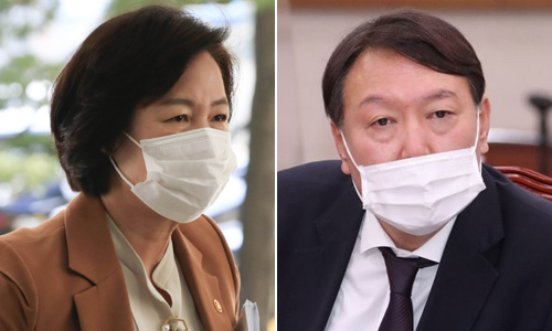 추미애 법무부장관(왼쪽)과 윤석열 검찰총장. 뉴시스·연합뉴스 |