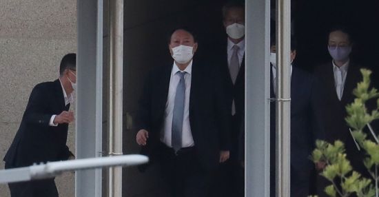 윤석열 검찰총장(가운데)이 9일 오후 진천 법무연수원에서 신임 차장검사를 대상으로 강연을 하기 위해 연수원 내에서 이동하고 있다. / 사진=연합뉴스 |