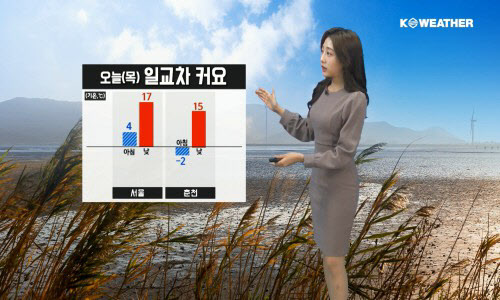 아침 기온은 서울 5℃, 춘천 -2℃ 도로 쌀쌀하겠고, 낮에는 기온이 크게 오르면서 일교차가 크겠다.