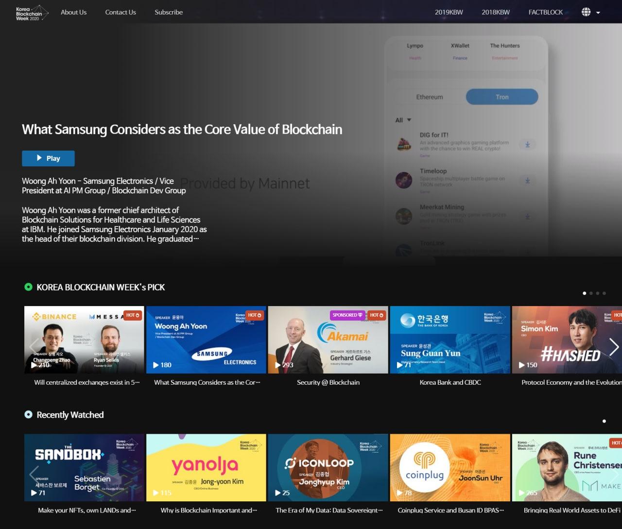 코리아블록체인위크(KBW) 2020 주최사인 팩트블록은 KBW 2020의 동영상 스트리밍 서비스를 13일 오후 12시부터 제공한다고 밝혔다.
