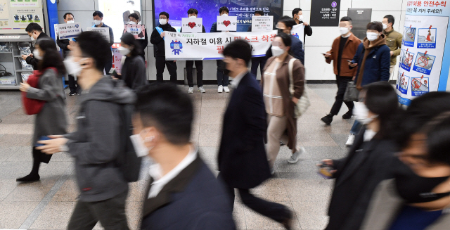다행히 길거리에서는 마스크 의무착용 지침이 잘 지켜지고 있었다. 출근길 및 다중이용시설에서 마주친 시민들은 여느 때처럼 대부분 마스크를 착용한 모습을 보였다. 구로역에서 만난 최모(52)씨는 “(마스크 미착용 시) 과태료가 부과된다는 것은 기사를 봐서 알고 있다”며 “열심히 쓰고 다니면 문제없을 것으로 생각한다”고 말했다. 이날부터 역사와 지하철 내부에 마스크 의무화 시행과 관련 방송이 추가되는 등 관련 홍보 활동이 강화됐다. 이외 다른 다중시설에서도 마스크 착용 규정이 준수되고 있었다. 서울 동대문구 서울대병원을 찾은 환자들은 마스크를 쓴 채 줄을 서서 문진표를 작성하고 체온측정을 해야 내원할 수 있었으며 인근 산후조리원에도 유아들을 제외한 모든 사람이 마스크를 쓰고 있었다.