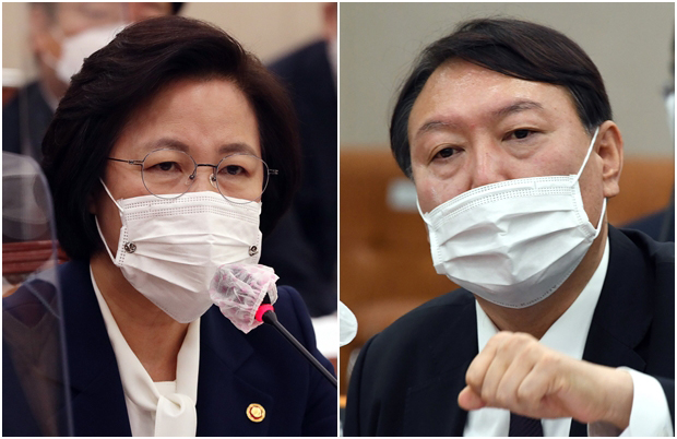 추미애 법무부장관, 윤석열 검찰총장[사진=이승환, 김호영기자] |