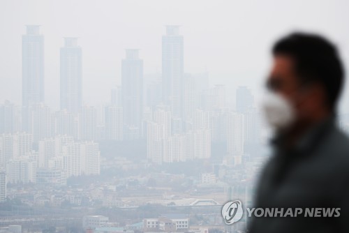 (오산=연합뉴스) 11월 17일 오전 초미세먼지 주의보가 발령 중인 경기도 오산시 보적사에서 바라본 화성시 동탄 일대가 뿌옇다. [연합뉴스 자료사진] |