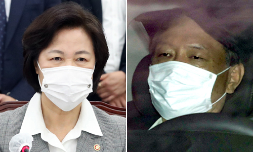 추미애 법무부 장관이18일 서울 여의도 국회에서 열린 공수처장후보자추천위원회 3차회의에 참석하고 있다. 오른쪽 사진은 윤석열 검찰총장이 같은 날 서울 서초구 대검찰청으로 출근하는 모습. 허정호 선임기자,연합뉴스 |