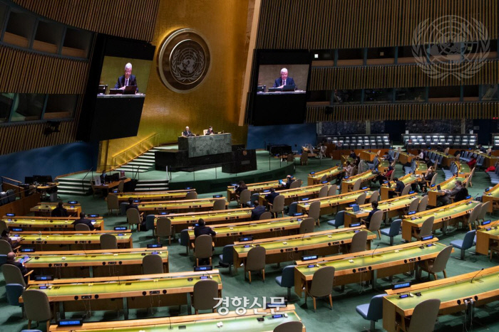 미국 뉴욕 유엔본부 유엔총회장에서 17일(현지시간) 잘의가 진행되고 있다. |유엔 |