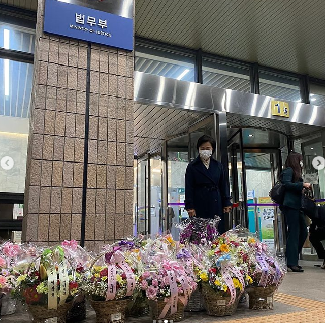 추 장관 측은 글에서 "매일 장관님에게 들어오는 수많은 꽃다발로 만들어진 장관실 꽃길"이라며 "퇴근길에 또 한가득 쌓인 꽃다발에 장관님 찐멈춤"이라고 설명했다. 그러면서 "이 자리를 빌려 성원을 보내주신 모든 분께 감사의 인사를 드린다"라고 덧붙였다.