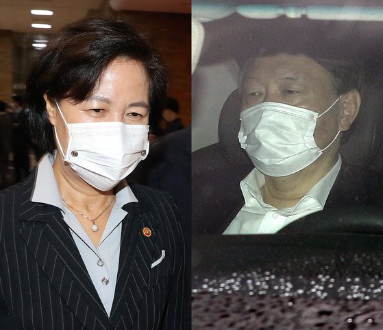 추미애 법무부 장관(왼쪽)이 19일 오후 서울 여의도 국회에서 열린 본회의에 참석하기 위해 본청으로 들어서고 있다. 같은 날 윤석열 검찰총장이 서울 서초구 대검찰청으로 출근하고 있다. 뉴스1 |