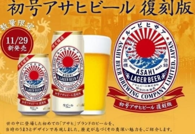 아사히맥주 과거 제품디자인. 욱일기가 그려져 있다. |