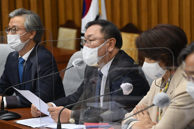 김태년 더불어민주당 원내대표가 26일 국회에서 열린 정책조정회의에서 발언하고 있다. (사진=연합뉴스) |