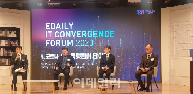 26일 서울 중구 KG타워 KG홀에서 열린 이데일리 ICT컨버전스포럼(ECF) 2020’에서 허욱 서울과학기술대 교수를 좌장으로 진행된 좌담회에 참석한 전문가들은 K-콘텐츠를 담아내고 유통시킬 플랫폼의 중요성에 공감했다. 또 우리 기업들이 플랫폼 경쟁에서 살아남기 위해선 경쟁보단 협력에 나서야 하며, 국내 기업이 해외 기업들과 공정하게 경쟁할 수 있는 환경을 조성해야 한다는 것이 중론이었다.