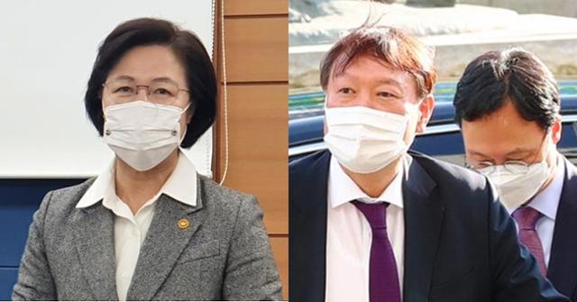 추미애 법무부 장관과 윤석열 검찰총장. 한국일보 자료사진 |