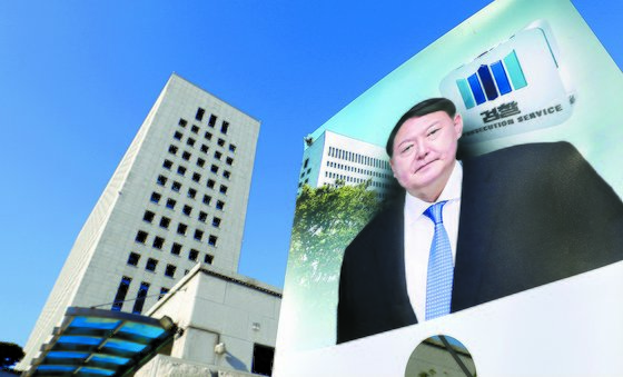 25일 서울 서초구 대검찰청 앞에 윤석열 검찰총장 얼굴이 그려진 배너가 세워져 있다. [뉴스1] |