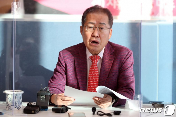 홍준표 무소속 의원(대구 수성구을)이 20일 오후 대구 수성구에 있는 자신의 지역구 사무실에서 긴급 기자간담회를 열고 "국가 4대 관문공항 건설로 지역 균형발전의 토대를 마련해야 한다"며 "이를 위해 대구·부산·광주(무안) 신공항 관련 특별법 동시 처리가 시급하다"는 입장을 밝히고 있다./사진=뉴스1 |